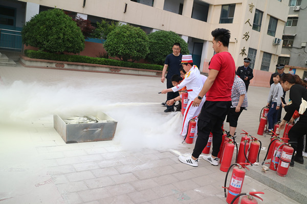 农大公安处消防科副科长周广全参加并指导了本次消防演练,为全校师生讲解了关于消防的各种相关知识,并演示消防器材的使用,最后以干粉灭火器为例,进行了实战演练。