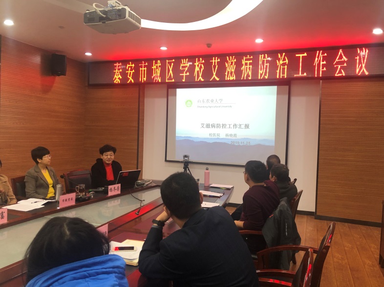 11月25日上午,校医院院长杨晓霞参加了泰安市疾控中心组织的“泰安市城区学校艾滋病防治工作会议”。会上,泰安市疾控中心杨冬芳主任介绍了泰安市艾滋病的疫情及防治形势。目前,泰城的大多数高校均有学生患者,并且患病人数有逐年递增的趋势。