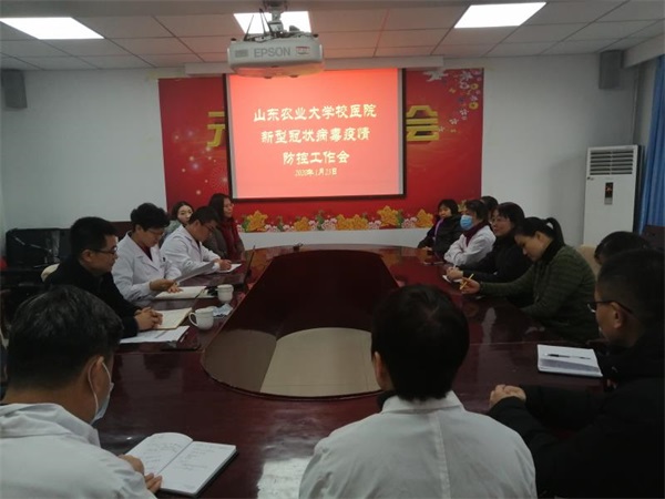 校医院院长杨晓霞传达了学校和泰山区卫健委等有关会议和相关文件精神,集体学习了《新型冠状病毒感染的肺炎诊疗方案》,宣布了《校医院新型冠状病毒感染的肺炎应急预案》,从院感防控、药品储备、疑似病例患者信息登记和报告等方面做了具体工作安排。