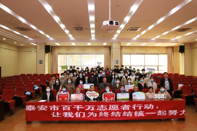 10月22日上午,泰安市百千万志愿者结核病防治知识培训会在泰安市疾控中心二楼会议室召开。校医院组织学校青年志愿者和红日青年志愿者社团骨干参加培训。
