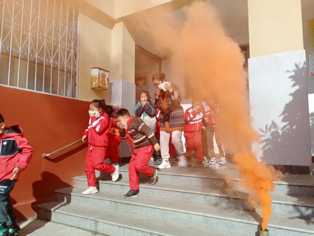 “铃……铃……”随着一阵急促的警报声响起,正在上课的师生根据预案,迅速以湿毛巾掩住口鼻,弯腰低姿按照既定疏散路线,快速、有序地撤离到学校指定的安全地带。所有师生迅速撤离至安全地带之后,周广全对本次疏散演练进行了点评,为同学们讲解了突遇火灾时正确的逃生技能。接着,周广全对教职工及学生进行了灭火器正确使用方法的培训并做出了现场指导。