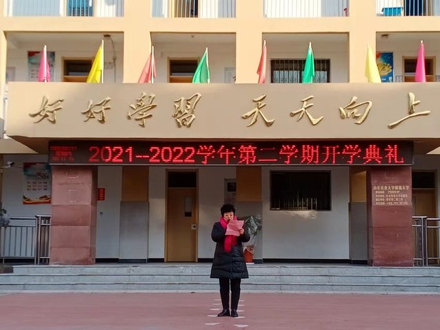 走进校园后,同学们纷纷被冰墩墩、雪容融和寒假实践活动作品展板所吸引。上午8:10,在庄严肃穆的升旗仪式中,开学典礼拉开了帷幕。在庄严的升国旗、奏国歌后,校长刘焕芬进行讲话,她勉励大家心怀感恩、学会思考,认真学习,健康成长,虎年虎虎生威,一起向未来!同时提醒大家自我调整,快速适应,紧绷安全、防疫弦。少先队大队长李明辰同学代表全体少先队员发表新学期倡议。